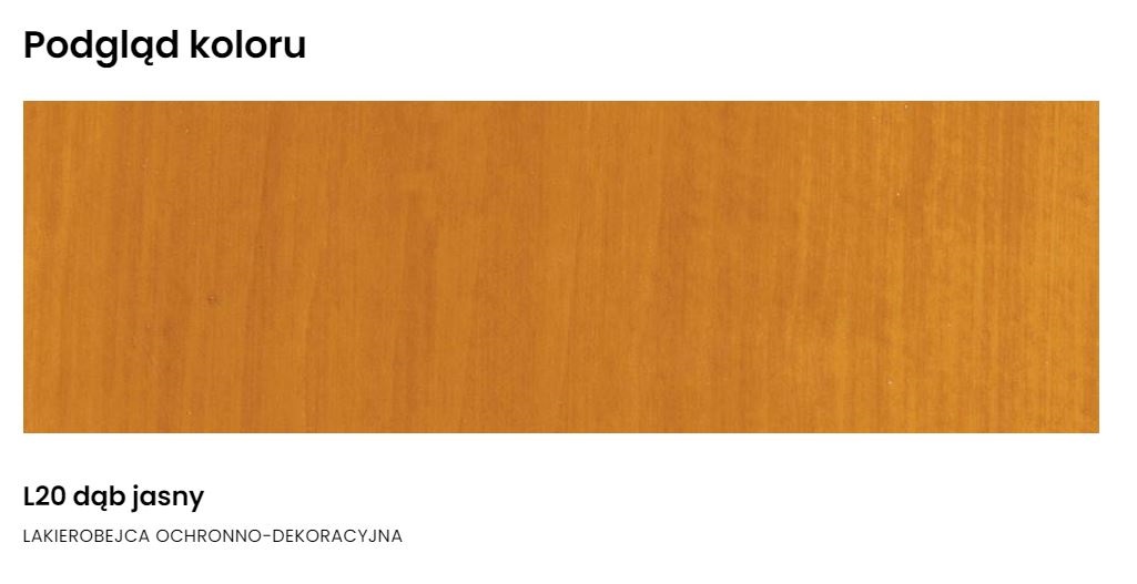 Wysokiej jakości Lakierobejca Ochronno-Dekoracyjna tworzy na drewnie trwałą i elastyczną powłokę odporną na ścieranie. Skutecznie zabezpiecza drewno przed działaniem słońca (UV), wody, śniegu i mrozu jednocześnie zachowując naturalny rysunek słojów drewna.