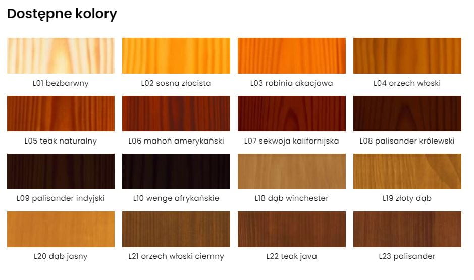 Wysokiej jakości Lakierobejca Ochronno-Dekoracyjna tworzy na drewnie trwałą i elastyczną powłokę odporną na ścieranie. Skutecznie zabezpiecza drewno przed działaniem słońca (UV), wody, śniegu i mrozu jednocześnie zachowując naturalny rysunek słojów drewna.